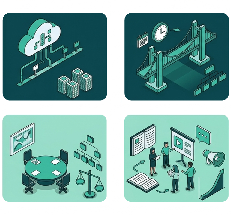 Prise en charge temporaire d'une direction data, d'une DSI ou d'un programme clé en contexte de réorganisation, fusion, migration ou remplacement. Maintien de la continuité opérationnelle, pilotage des équipes et des livrables, préparation de la passation. Durée et périmètre définis selon les besoins.